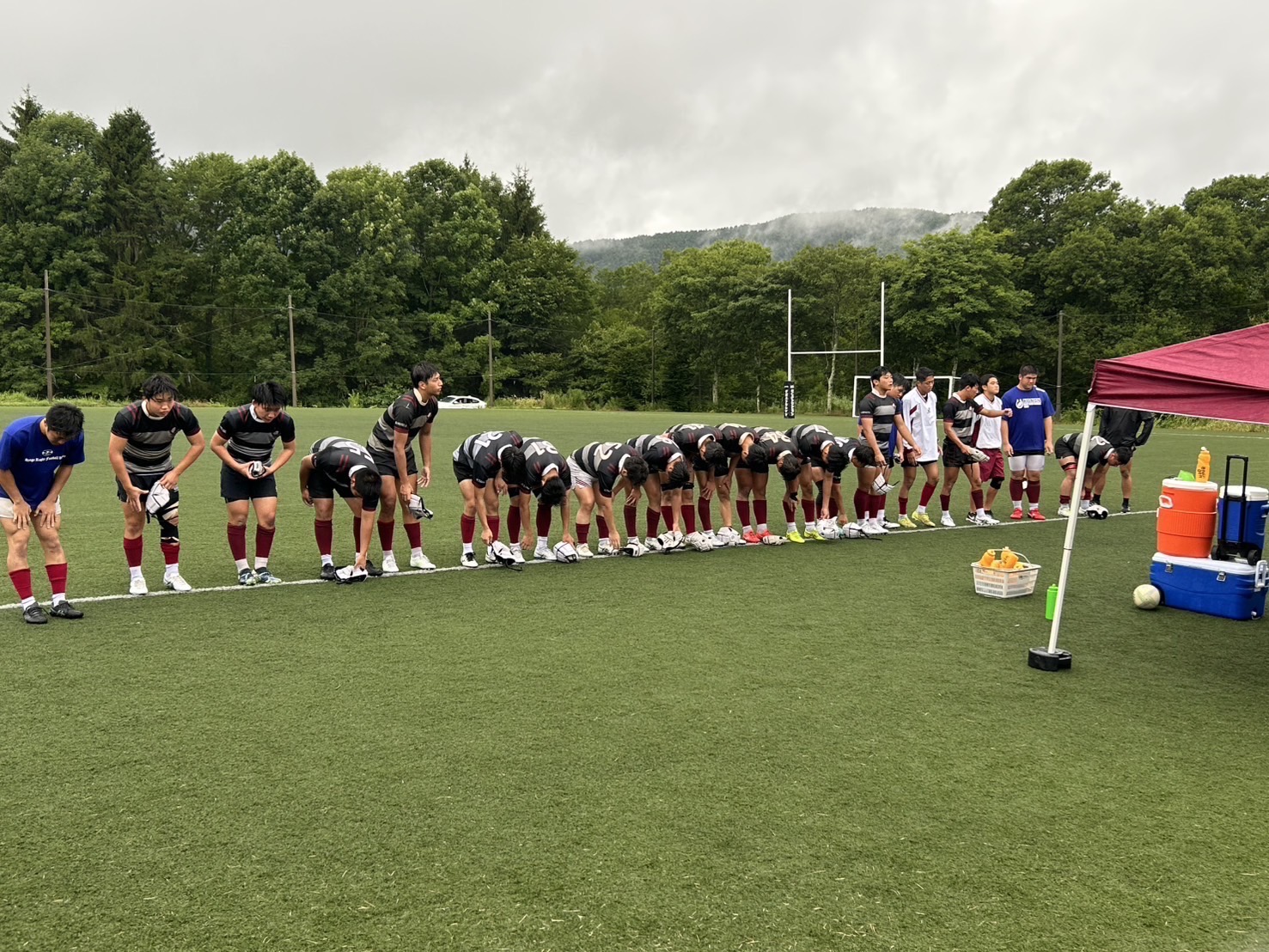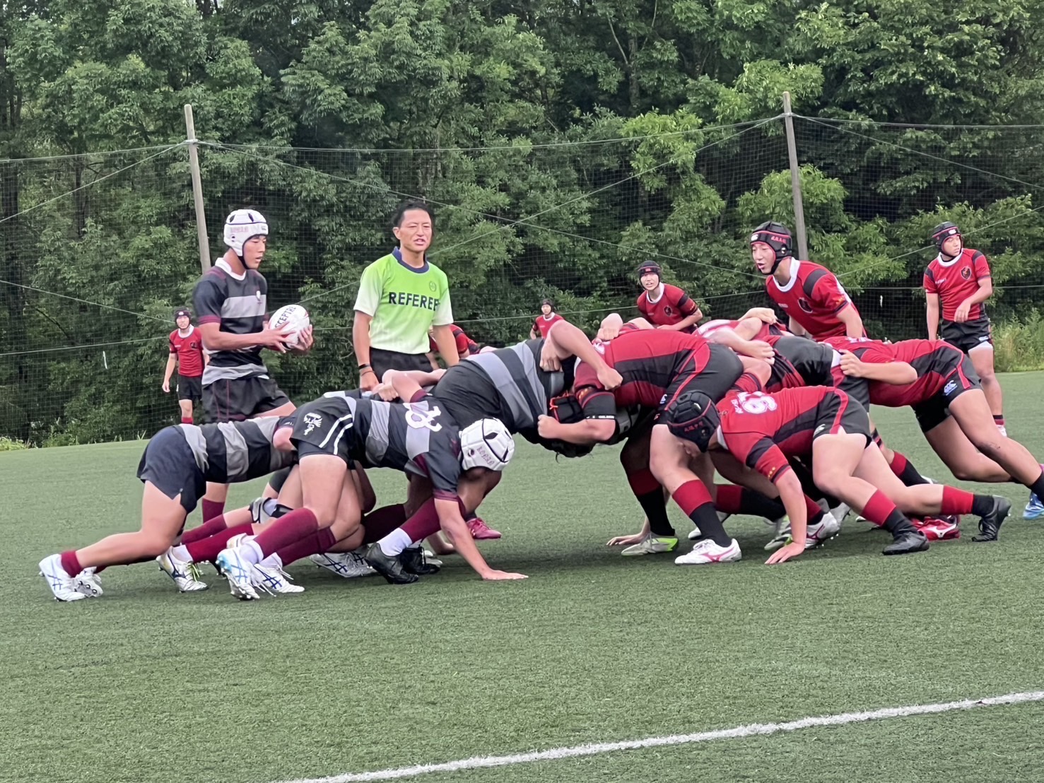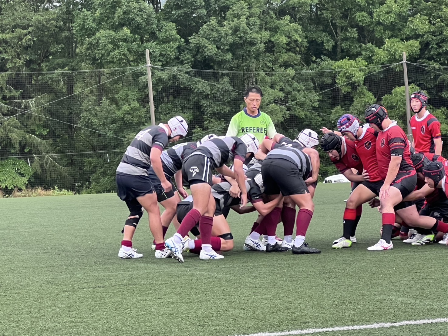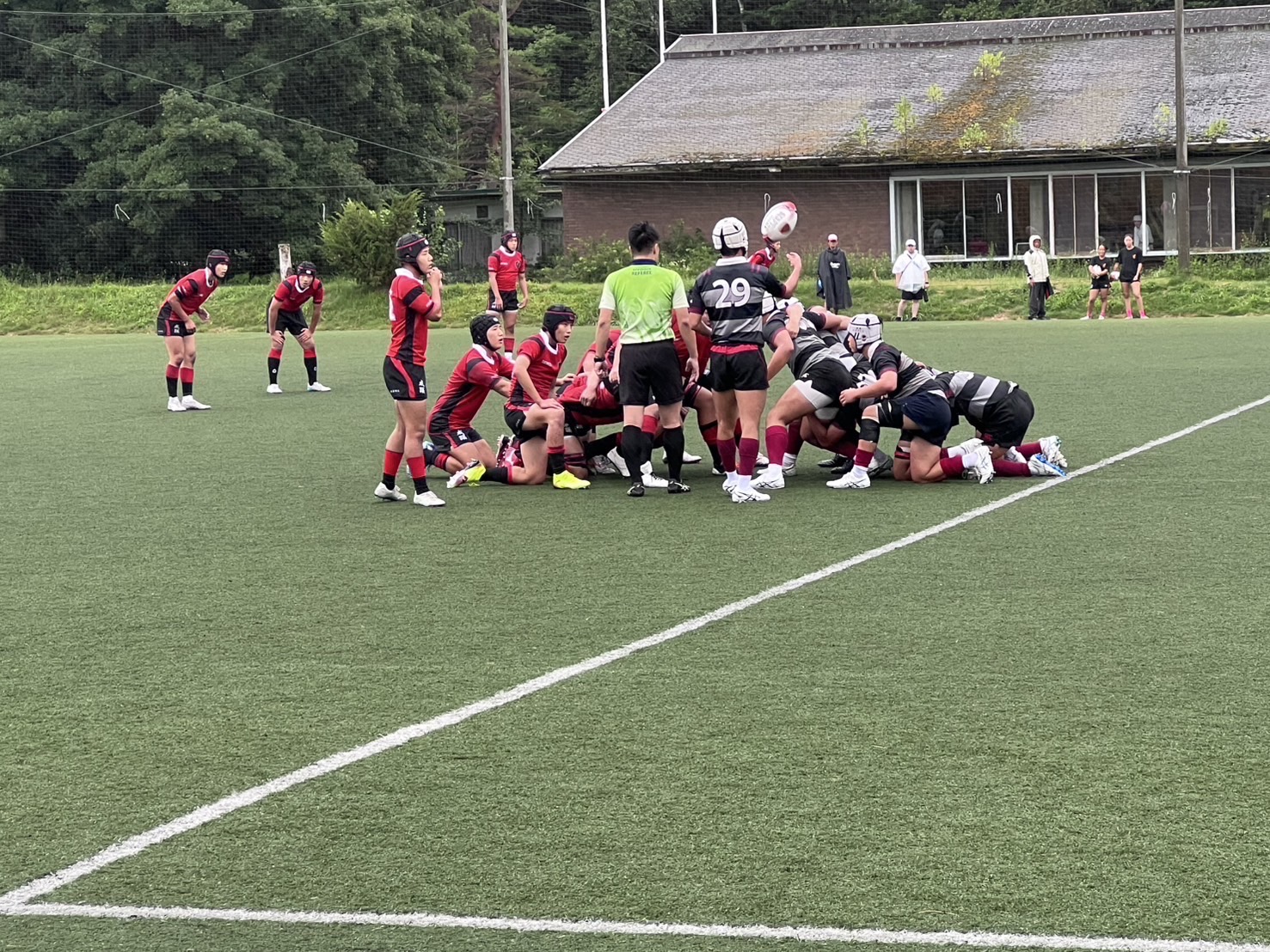 グランドコンディションは、強風と強雨、気温21度という環境の中での試合でした。結果は22-29(前半0-17)で、春の南郷杯に続き僅差での敗戦でした。甲南は怪我人が多く、ベストメンバーが組めず苦しい状況でしたが、内容的には互角な闘いだったと思いました。前半は風下、坂下(グランドが微妙に傾斜してる)で3トライを献上したが、良く耐えたと言うのが私の感想。後半は予想通り甲南が主導権を握って猛攻をかけてトライを奪ったが、成蹊に追加の1トライ取られて、その差のままノーサイドとなった。前半、甲南のタックルがやや甘くなった所を成蹊に鋭く突かれて前進を許し、そこから3トライ献上したのがやはり残念だった。