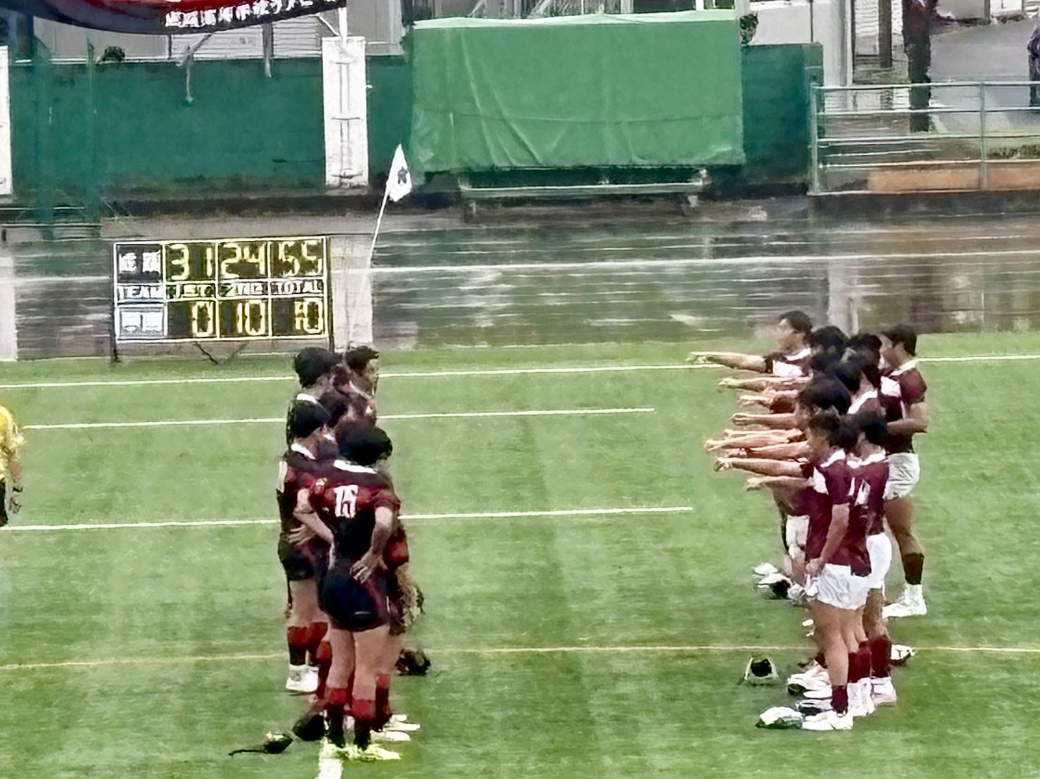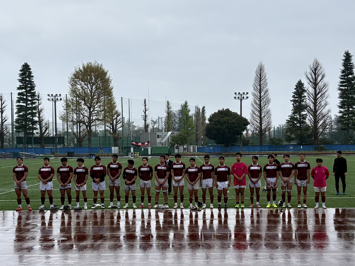 今日は生憎の天気となりました。アップの途中からポツポツと降り出した雨は強くなったりと試合内容にも影響がありました。